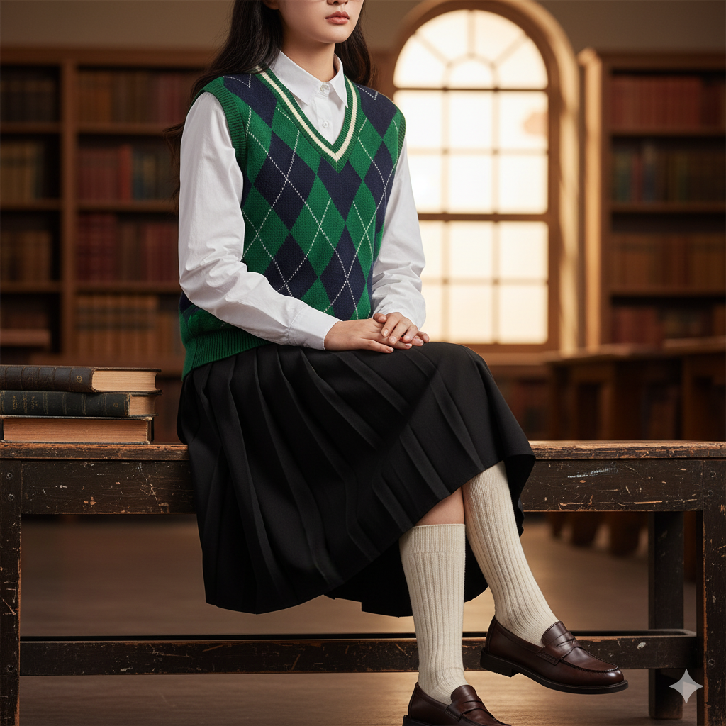 밋밋한 룩에 포인트를 주면서도 지적인 분위기를 연출할 수 있는 '꾸꾸꾸' 스타일의 대표주자입니다. 니트 베스트(조끼)를 활용한 레이어드 룩은 2025년에도 변함없이 트렌드예요.