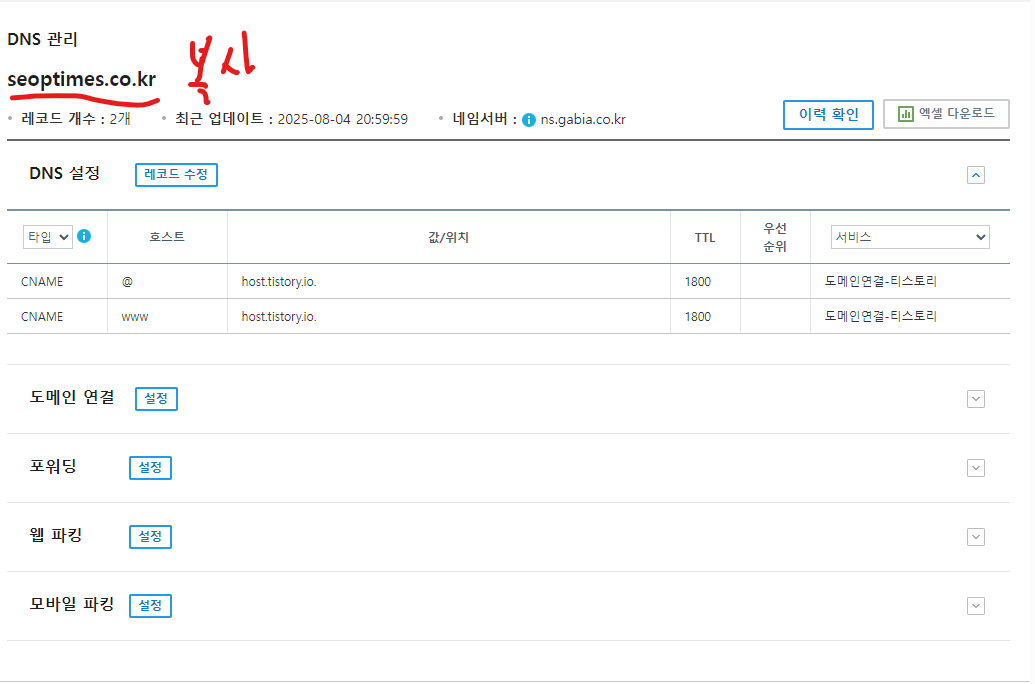 티스토리와 가비아 도메인 연결하기